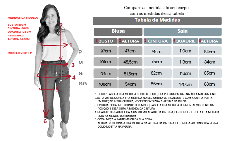 Composição: tecido de alta qualidade, pensado para seu conforto e beleza.